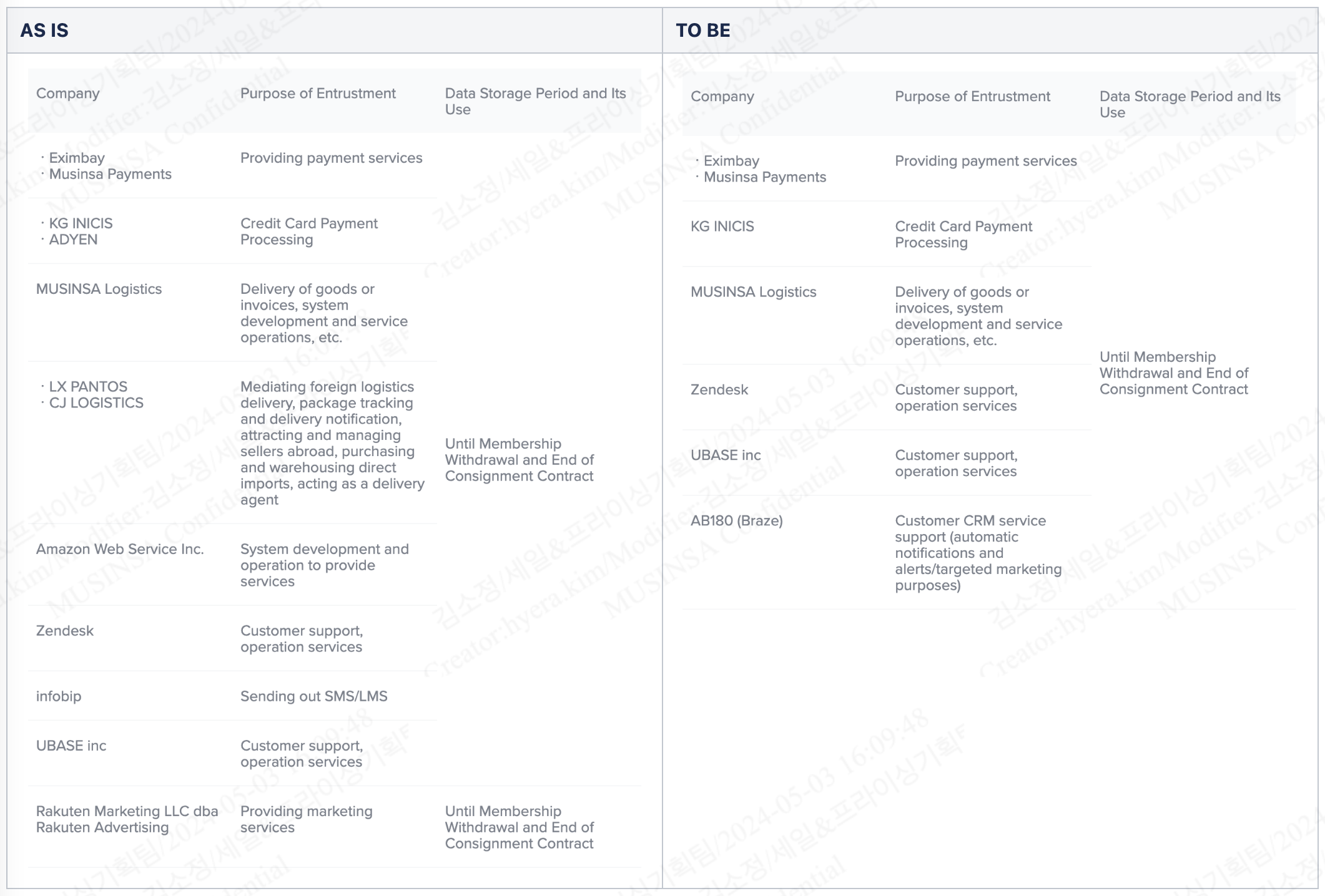 A. In order to provide smooth service, the company entrusts personal information processing tasks as follows.